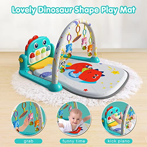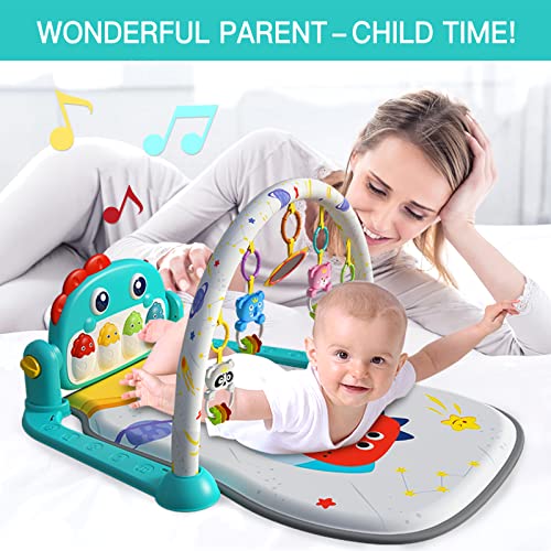 Eners Baby Gym Spielmatte Musikalische Aktivitätsmatte Piano Baby Play Gym Bauchzeit Gepolsterte Matte für Baby Neugeborene Kleinkind Kleinkinder (Dinosaurier blue)