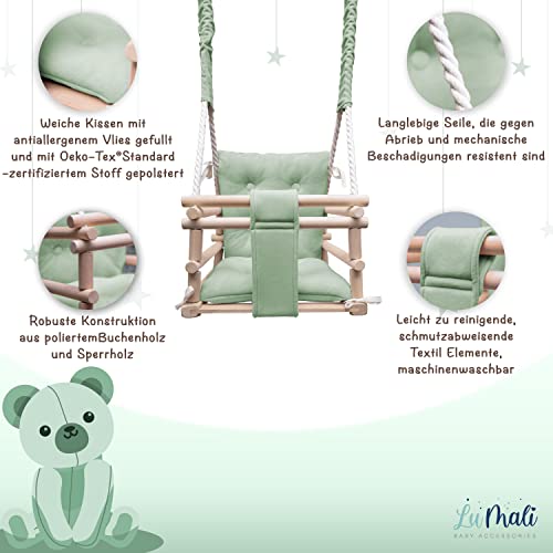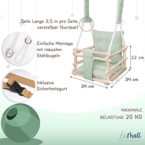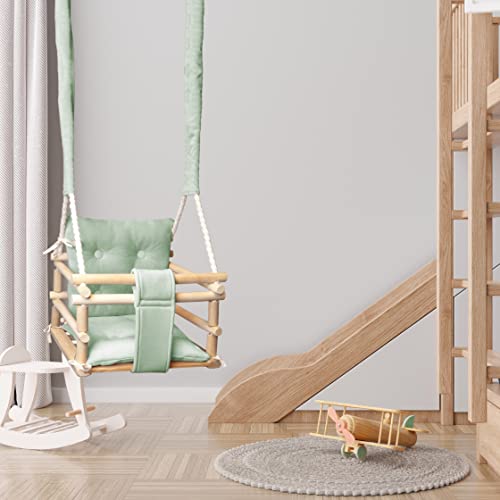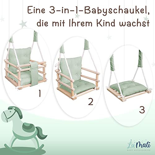 Holz Babyschaukel Indoor – Kinderschaukel – Baby Schaukel 3in1 mit Kissen und Sicherheitsgurt – Komfortable und Robuste