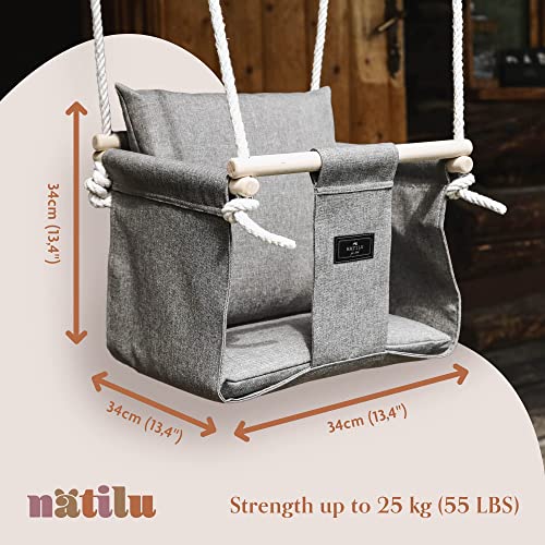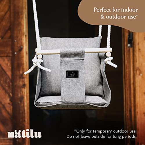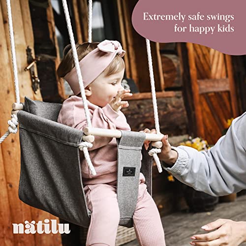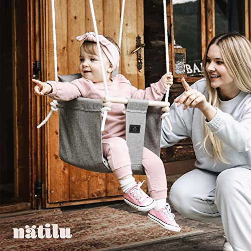 NATILU® Babyschaukel Set Indoor Outdoor | Silver | Schaukel | Kinderschaukel | Kindergartenschaukel | Kleinkindschaukel | Holzschaukel | Schaukelsitz | Swing ab 6M+ für Zuhause, Garten