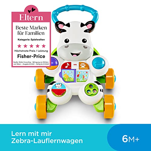 Fisher-Price Lern mit mir – Zebra Lauflernwagen, musikalisches Aktivitäts- und Gehspielzeug mit Lerninhalten, ab 6 Monaten (deutsche Version) Reduzierte Verpackung,HBW56