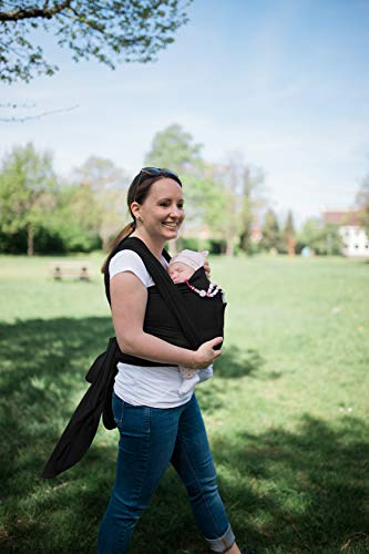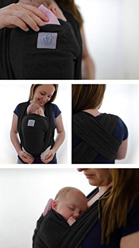 Babytragetuch mit Vordertasche inkl. Baby Wrap Carrier Tasche und Anleitung – langes elastisches Tragetuch für Früh- und Neugeborene Kleinkinder (Schwarz)