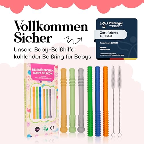 ✅ 𝙋𝙚𝙧𝙛𝙚𝙠𝙩𝙚𝙨 𝘿𝙚𝙨𝙞𝙜𝙣: Die Beissring Baby Strohhalme Silikon haben 2 verschiedene Texturen Beisringset Baby, um das Zahnfleisch zu stimulieren als Baby Zahnungshilfe Veilchenwurzel Baby Zahnen u. zugleich zur Baby Beruhigung.