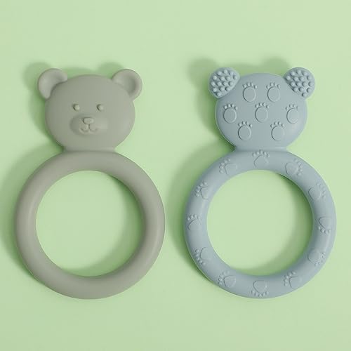 meanus Beißringe für Babys, Bärenförmig Beißring Spielzeug aus Silikon, BPA-frei (Sage+Ether)